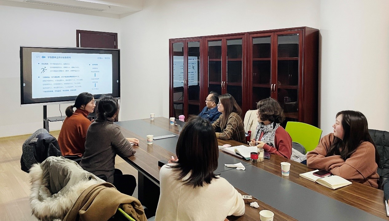 首先,各本科生辅导员及研究生辅导员根据所带学生情况及板块工作,讨论2022年的工作计划。围绕学生工作的重点、难点:思想政治教育、大学生征兵、毕业生就业、心理健康教育、党团班级建设、帮困助学等各方面详细规划2022年的各项工作。数学系党总支副书记王岑岑介绍了数学系2022年学生党员发展计划,并建议大家就征兵工作提前做好动员宣传;物理系党总支副书记周青利就辅导员职业生涯规划分享经验,号召学工团队积极申报思政课题,将思政教育提升到理论新高度;化学系党总支副书记胡研展示2022年学院围绕心理健康教育拟开展的各项讲座、培训和主题教育;学院团委书记王进介绍到,2022年恰逢建团百年与建校百年,学校学院将会开展系列纪念活动,赓续红色基因,培养红色传人。学院就业联络人周荣明结合2021年毕业生就业工作情况,进行个案分析,建议毕业班辅导员做好一生一册,精准对接就业方案。研究生辅导员郭晓光、周桥、李晨阳,及本科生辅导员林晨亚、丁赛伦分别结合各自板块工作与所带学生情况汇报2022年工作计划。