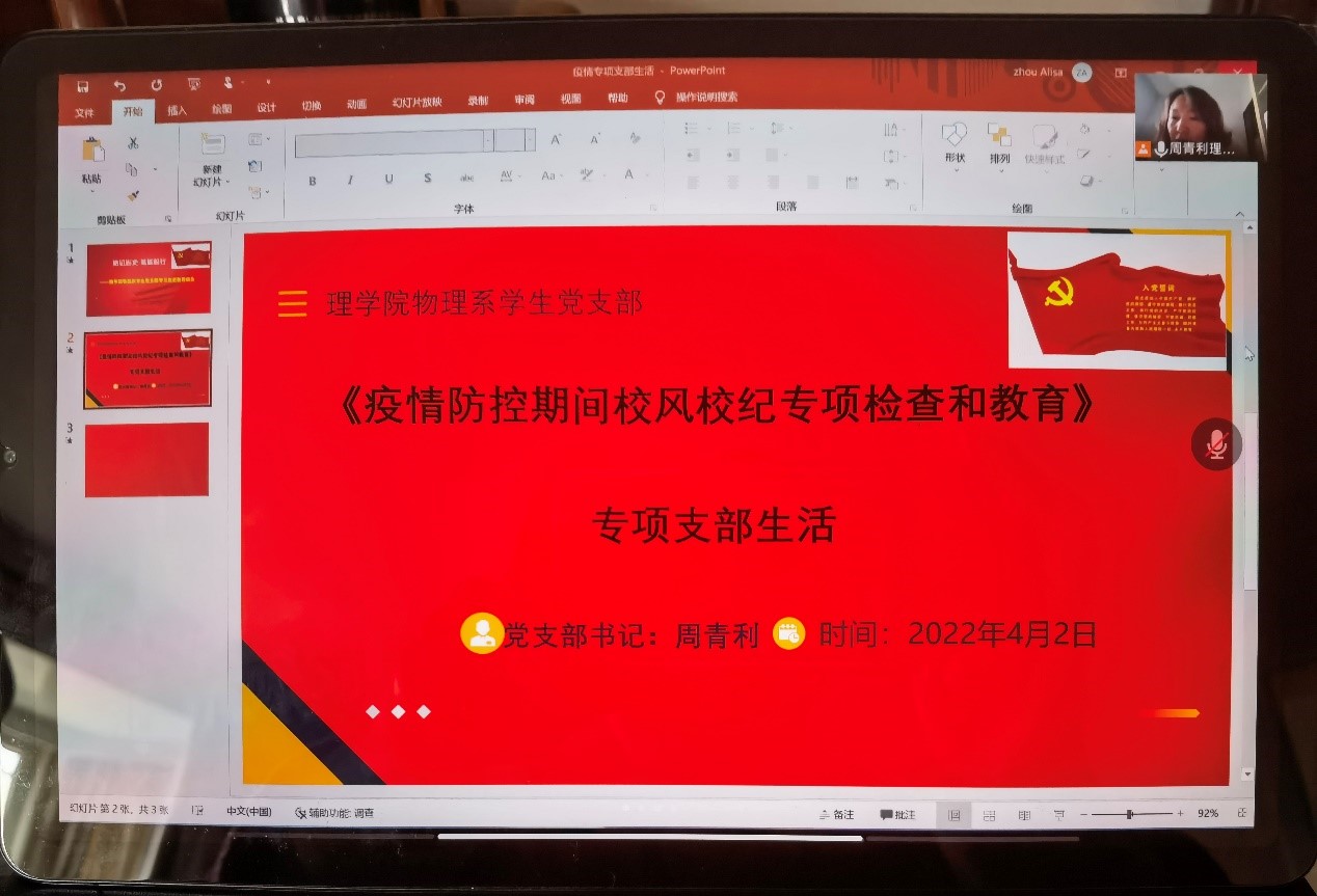 理院学工坚定不移执行学校《疫情防控期间校风校纪专项检查和主题教育》要求,启动三级网络、党支部、学生会巩固抗疫成果,宣传教育共计覆盖本科生1048人次,取得初步成效:全员核酸检测、各项信息数据排摸精准及时、准封闭期间学院学生违反校纪校规累积0次、相关专题教育随后将持续进行。