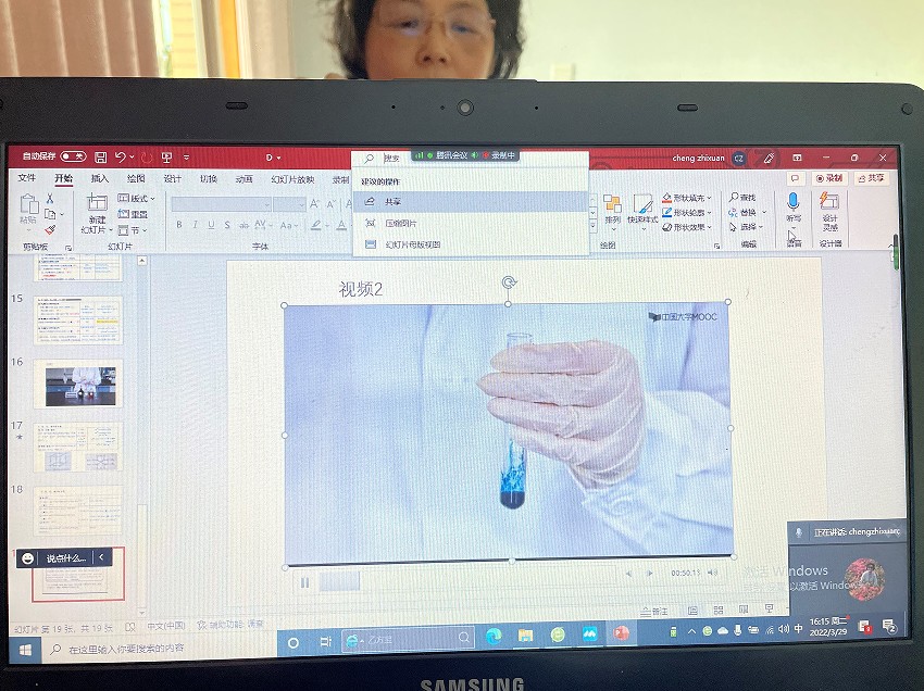 程知萱老师对照视频给同学讲解d区金属元素的性质实验