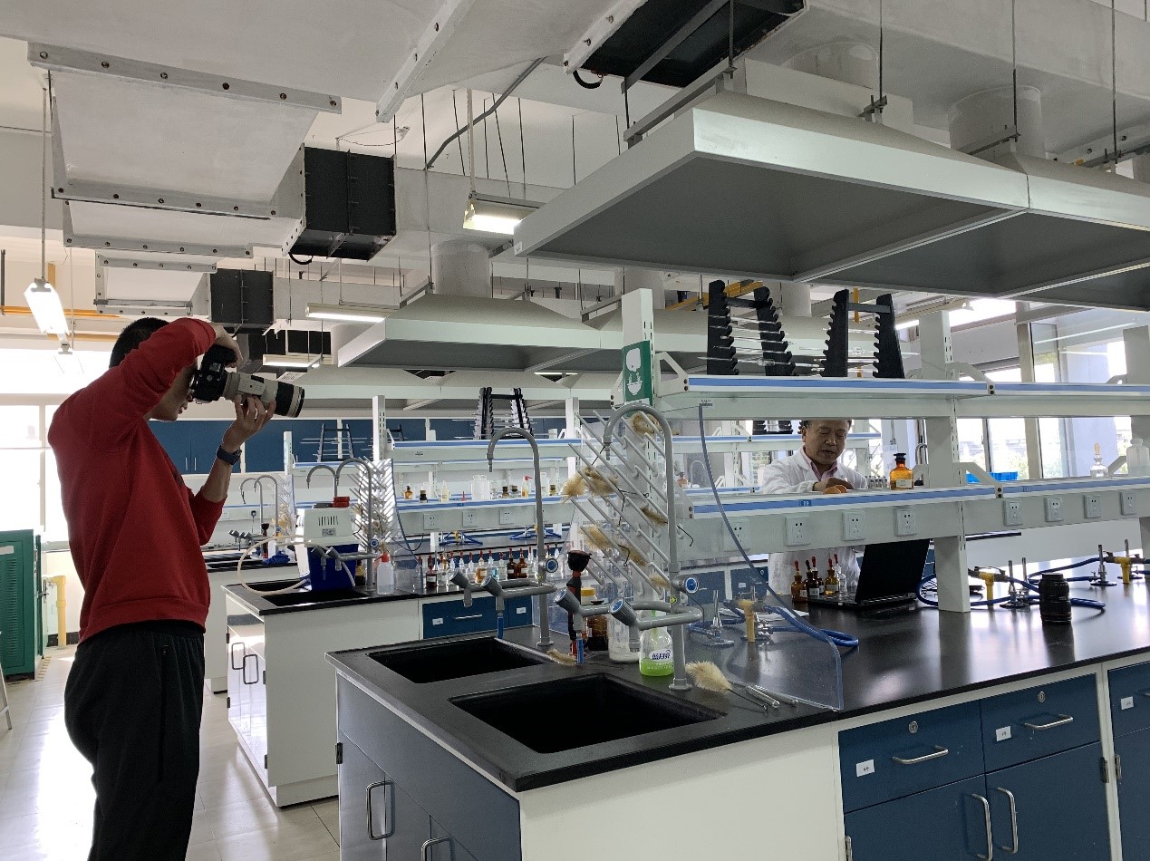 安保礼老师在拍无机化学演示实验视频