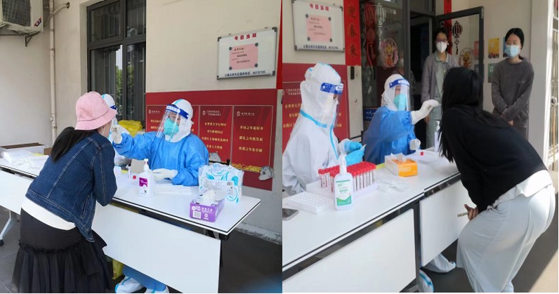 5月14日晚,她刚配合完成化学楼的消杀工作,就接到了核酸采样工作启动通知。15日凌晨,她紧急入住了东区专家楼,短暂休息后,当天上午便作为新手大白参与核酸采样的实习。
