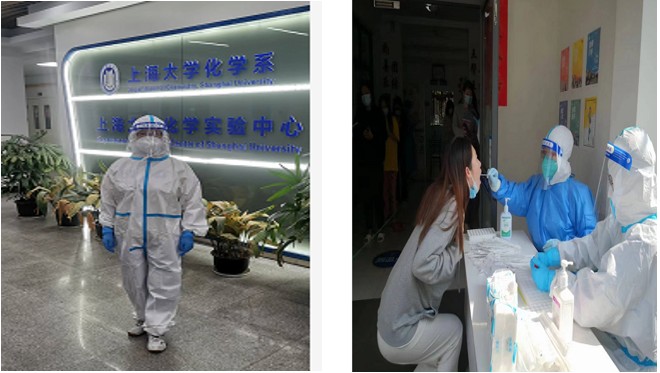 3月17日回家几日后,她于3月22日再次入校值守。在化学系领导的带领下,她参加了化学系10人抗疫小分队,积极投身疫情防控管理、物资筹措发放、关爱引领学生等工作,并参与化学系研究生复试、实验室管理、安全管理等工作。高温烈日下,狂风暴雨中,她不辞辛苦、搬运物资。哪里有需要,哪里就出现她忙碌的身影。