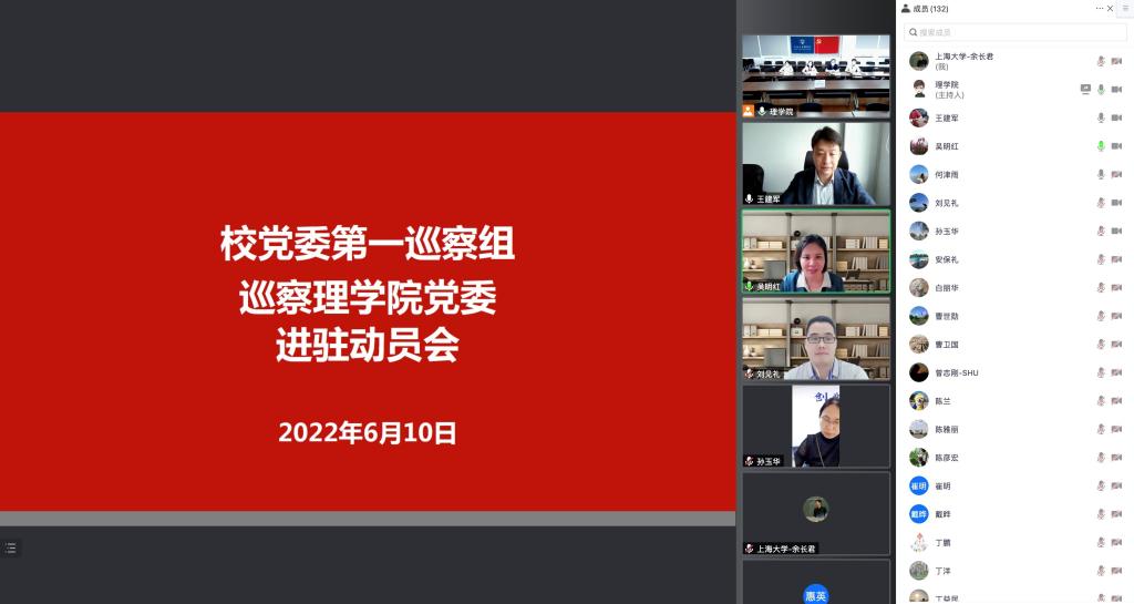 根据校党委第八轮巡察工作整体部署,鉴于目前的疫情防控需要, 2022年6月10日,校党委第一巡察组巡察永利集团88304官网党委进驻动员会采用了线上线下相结合的方式召开,线下会议室设在永利集团88304官网E408会议室。校党委常委、副校长吴明红,校党委巡察办常务副主任崔海霞,校党委第一巡察组组长王建军、副组长孙玉华,第一巡察组全体组员,巡察办工作人员,永利集团88304官网全体党政领导班子成员,学院师生代表共计100余人出席了本次进驻动员会。会议由永利集团88304官网常务副院长张登松主持。