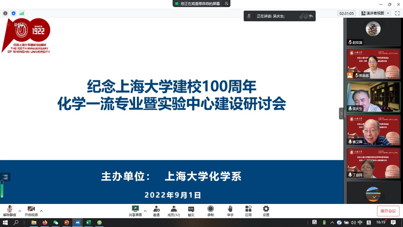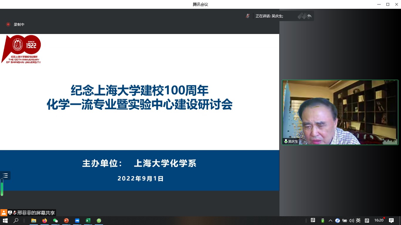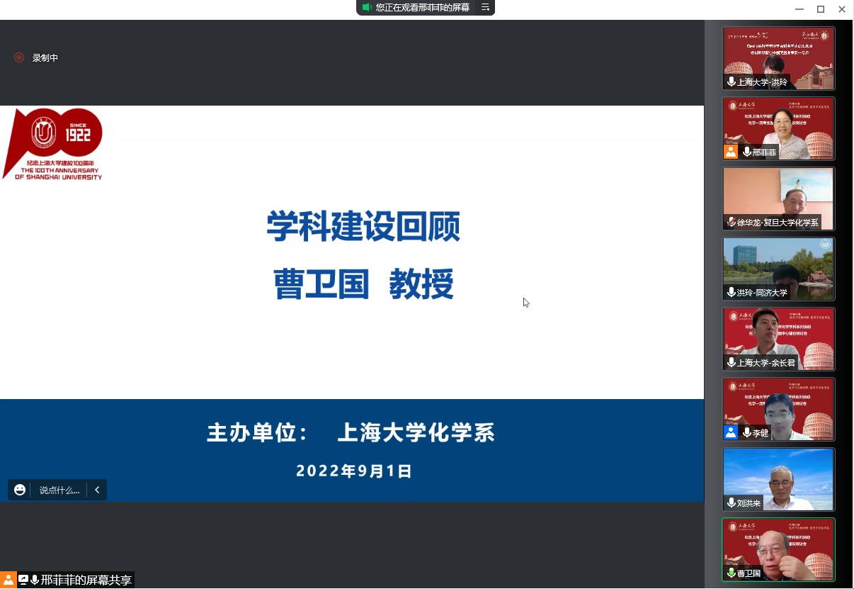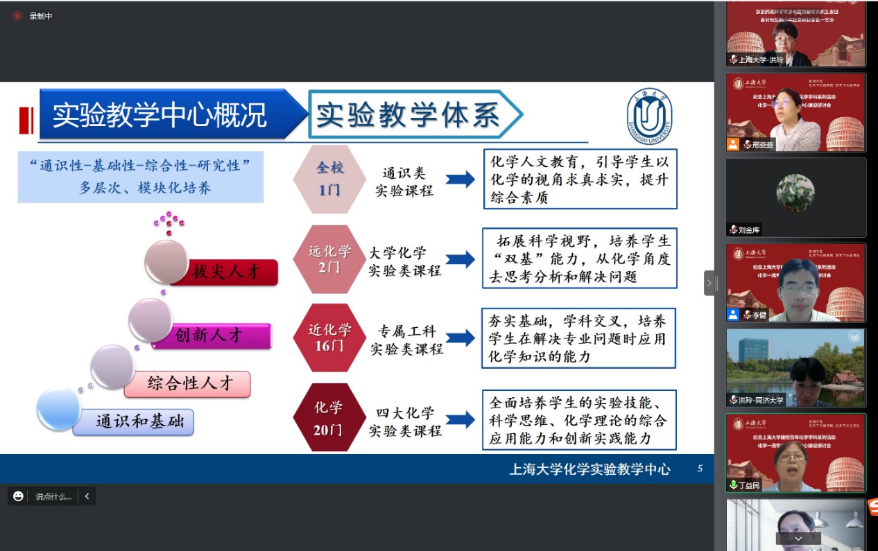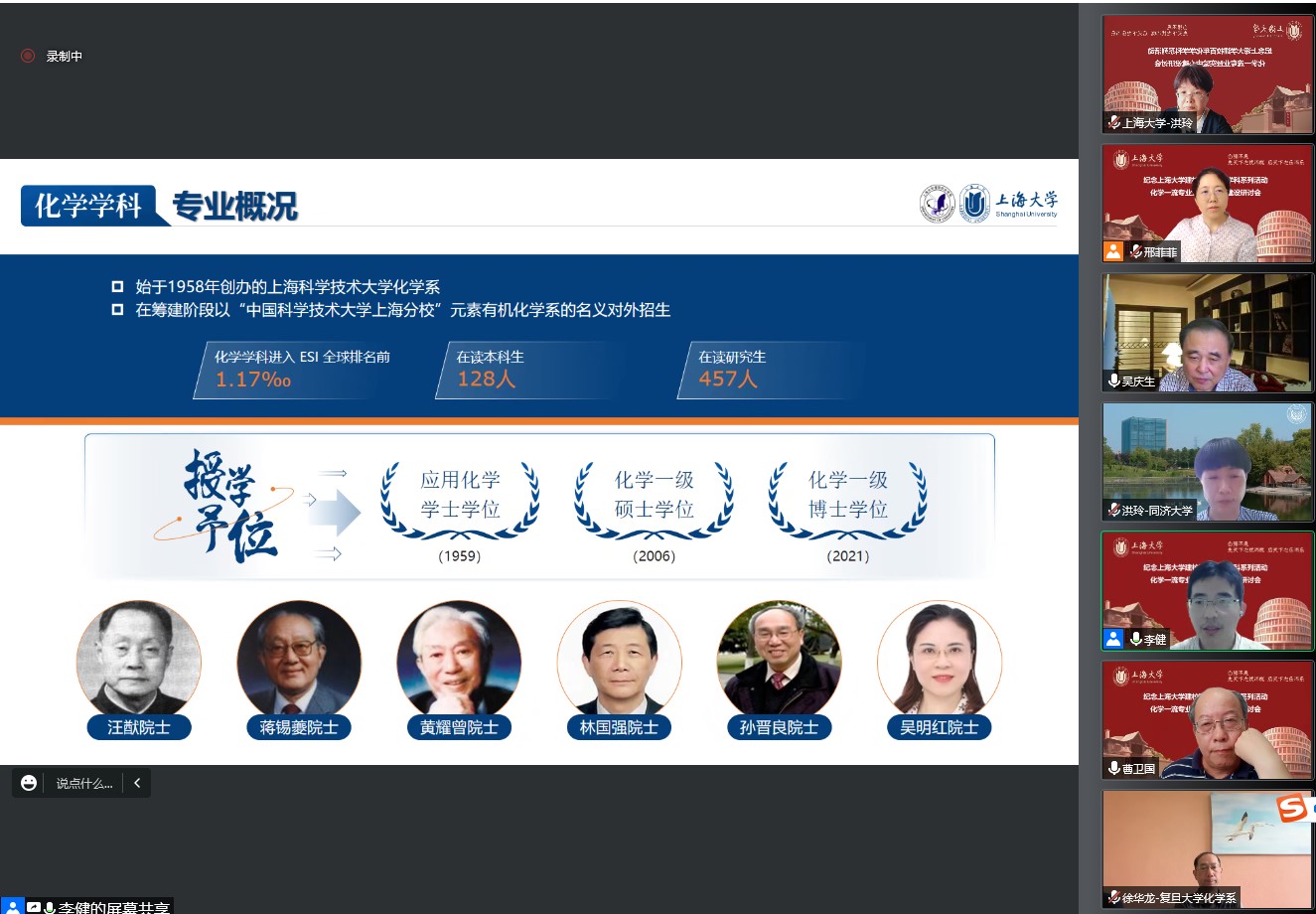 百年上大,红色传承,世纪辉煌,自强不息。9月1日下午,化学学科纪念永利集团88304官网建校100周年系列活动之一“化学一流专业暨实验中心建设研讨会”在线上成功举办。研讨会旨在加强永利集团88304官网应用化学本科专业建设和实验中心平台建设,加快化学创新人才的培养,推进教育教学相关改革举措。