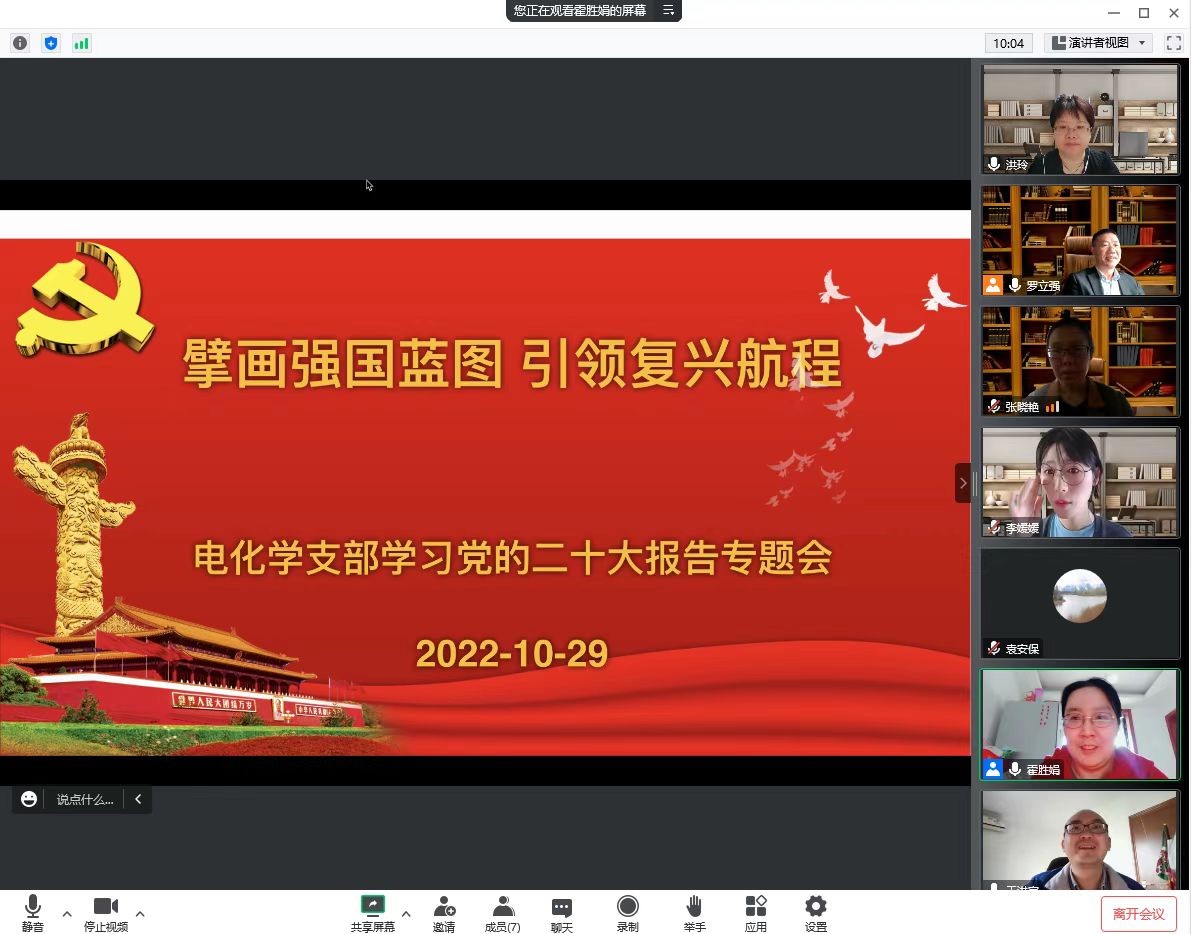 党的二十大胜利召开,全面开启了建设社会主义现代化强国的新征程。化学学科党总支全体党员以各种方式收看了开幕会盛况,迅速掀起学习党的二十大报告热潮。