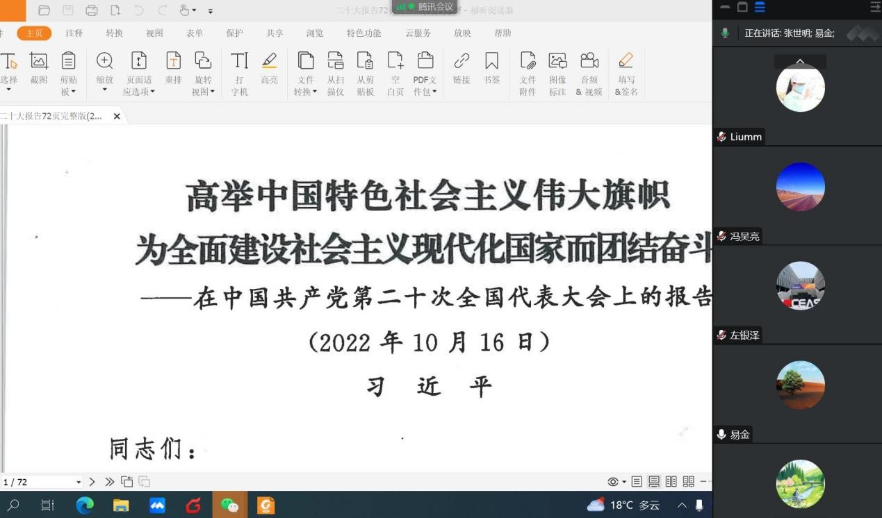 把党的二十大精神学习好、宣传好、贯彻好,是当前和今后一个时期的首要政治任务。近日,化学学科党总支的7个党支部组织开展线上、线下多种形式的专题组织生活会,全体党员积极参与,认真学习了党的二十大报告,交流了学习体会。
