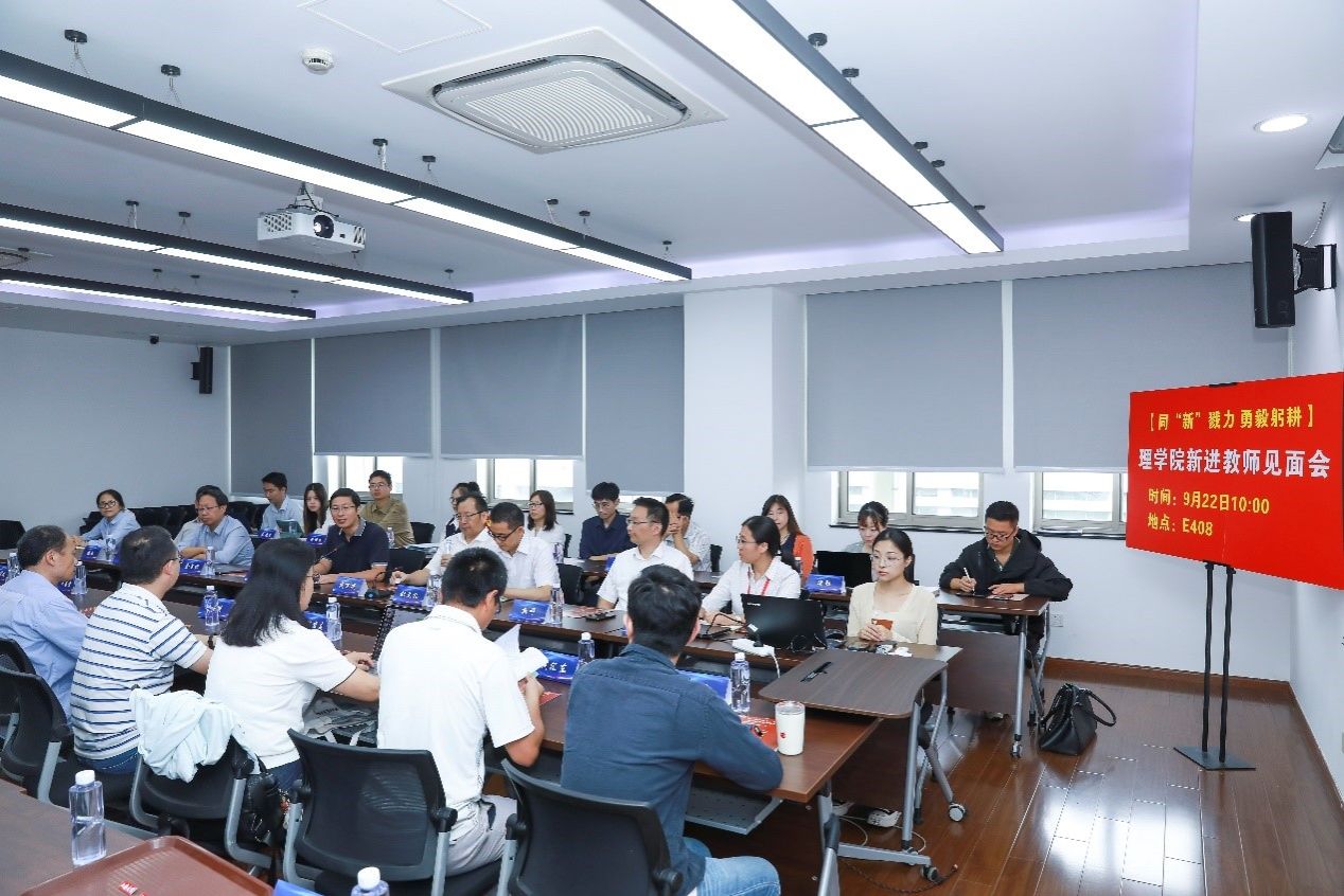 9月22日上午10点,永利集团88304官网新进教师见面会于宝山校区E408室举行。永利集团88304官网党委书记盛万成、常务副院长张登松、党委副书记、纪委书记刘见礼,副院长余长君、永利集团88304官网副院长袁帅、副院长戴晔、副院长郭聪(挂职)、工会主席张敏、青联会会长郦鑫耀,以及数学、物理、化学三个学科党总支书记及20余位新进教师参加了本次会议。会议由永利集团88304官网研究生辅导员魏宛辰和青联会会长郦鑫耀联袂主持。