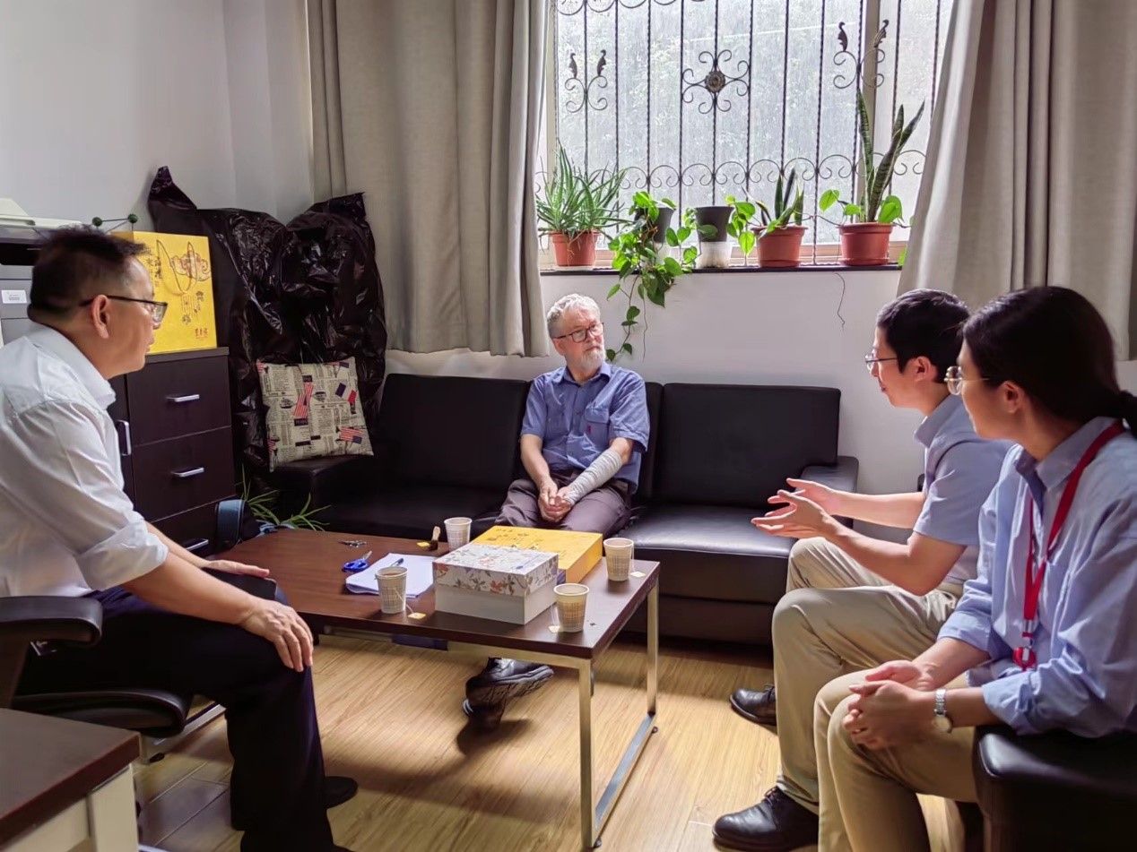 9月25日上午,永利集团88304官网党委书记盛万成,永利集团88304官网常务副院长张登松,分管外事工作副院长郭聪(挂职)等一行前往量子与分子结构国际研究中心看望了近日从澳大利亚返回永利集团88304官网工作的澳大利亚科学院院士Jeffrey Reimers教授并送上了中秋慰问。