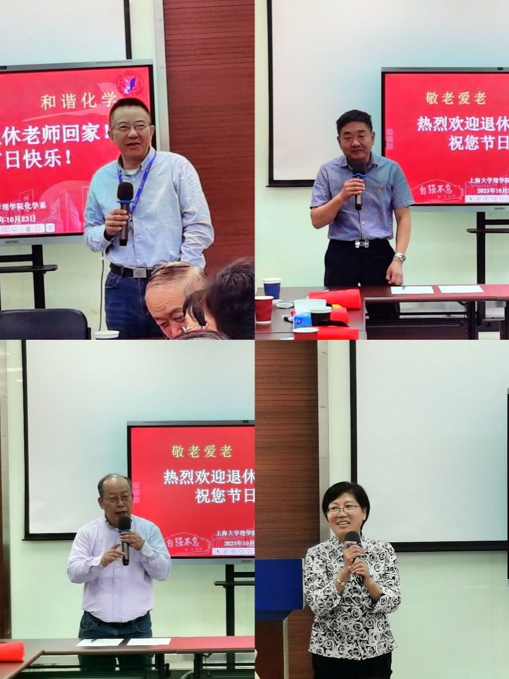 化学学科党总支书记邢菲菲、系主任李健、院工会主席张敏、系副主任丁益民、党总支副书记胡研参加了本次活动。化学系老领导、现任实验设备处处长方建慧,后勤保障部副部长、总务办主任刘亮也与老教师们热情交流。系工会主席宋力平主持活动。