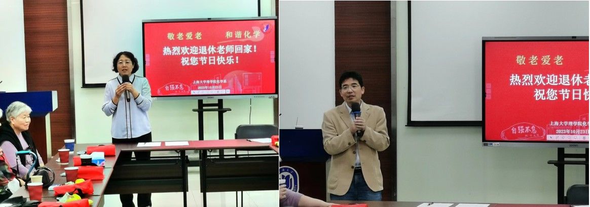 邢菲菲热烈欢迎老教师并祝他们身体健康、晚年幸福,她简要介绍了化学系各项党务工作和中心工作,邀请老教师们“常回家看看”,对院系发展提出宝贵建议。李健代表化学系向老教师们送上节日的祝福和亲切的问候,欢迎老教师为化学系的发展献计献策,感谢老教师当年为化学系做出的贡献。方建慧、张敏向老教师们表达衷心的祝福与感谢,请老教师们常回母校看看。系老领导曹卫国、陈雅丽先后发言,向老教师们送上节日的祝福和亲切的问候。