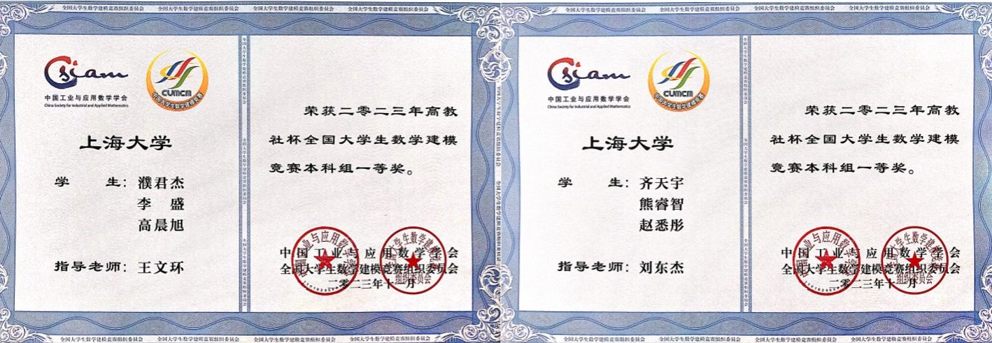全国大学生数学建模竞赛创办于1992年,每年一届,是首批列入“高校学科竞赛排行榜”的19项竞赛之一。2023年,来自全国及美国、澳大利亚、马来西亚的1685所院校/校区、59611队(本科54158队、专科5453队)、近18万人报名参赛。本届比赛共评选出本科组全国一等奖299项,获奖率为0.55%;全国二等奖1200项,获奖率为2.2%。此次比赛,永利集团88304官网共选拔51支队伍参赛,共获全国一等奖2项(指导教师分别是永利集团88304官网数学系刘东杰老师和王文环老师),全国二等奖4项,取得永利集团88304官网近几年来的最好成绩。参赛学生来自永利集团88304官网、计算机学院、通信与信息工程学院等。