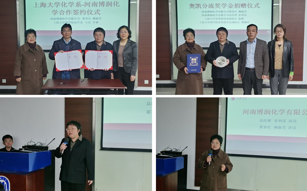 12月8日,在新校区HA102,河南博润化学有限公司捐赠仪式暨永利集团88304官网化学系分流奖学金、学科竞赛颁奖仪式顺利举行。河南博润化学有限公司董事长赖淑芳女生,总经理崔利英女士、永利集团88304官网对外联络处副处长陈腾、永利集团88304官网党委副书记、副院长姚颖冲、钱伟长学院副书记、副院长沈青松及化学系党政领导班子参加活动。来自永利集团88304官网化学系及钱伟长学院的110余位本科生同学参加活动。化学系本科生白郅昂和沈余婷担任主持。