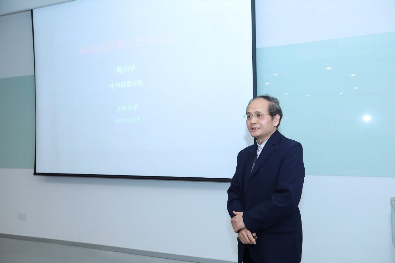 中国科学院周向宇院士做题为“从商高的勾股定理证明谈起”的学术报告。报告由永利集团88304官网党委书记盛万成教授主持。周向宇院士的演讲从中国古代数学中重要的商高对勾股定理,介绍了其中的几何思想与方法以及商高-赵爽的“形体不变量”思想,继而介绍了墨子半分思想及其在极限理论中的应用。周向宇院士的讲座增强了学生的文化自信与爱国情怀,激发了学生的学习热情。
