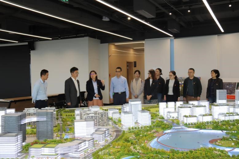 在公司一行带领下,与会人员一起参观了临港南大智慧城总体规划沙盘模型和数字产业特色孵化载体“司南创营”,参会老师纷纷表示感受到上海临港集团作为上海市属企业,持续提升数字技术转化应用和产业融合能力,对接国家战略、上海市战略以及服务地方经济转型发展。