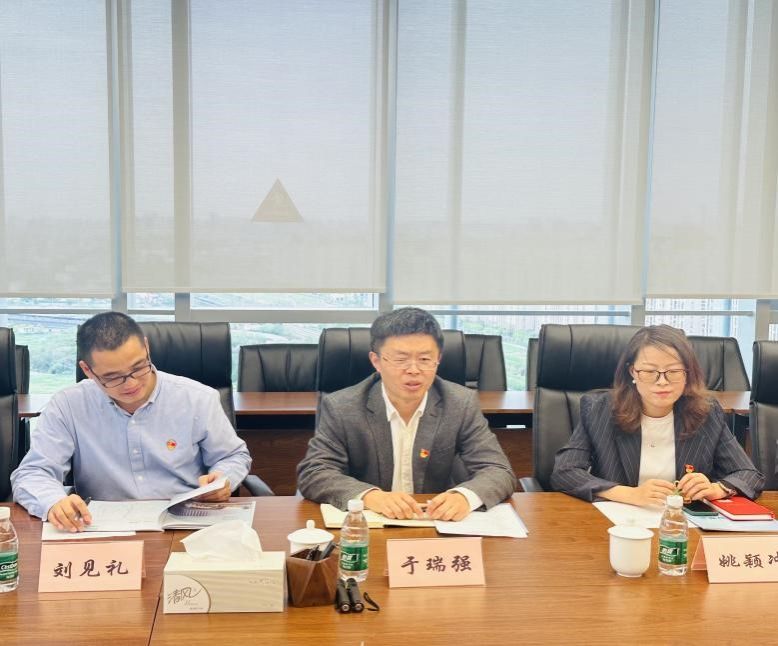 临港南大职慧城市发展有限公司第二党支部书记、总经理助理赵静,公司科创部经理刘晓彤,综管部经理张云龙,第二党支部委员、综管部经理助理殷丽华,第二党支部委员、综管部党务干事李同等一行出席接待,永利集团88304官网党委书记于瑞强,党委副书记、纪委书记刘见礼,党委副书记、副院长姚颖冲,数学系党总支书记赵发友,化学学科党总支书记邢菲菲,数学系党总支副书记王进,物理系党总支副书记周青利,化学学科党总支副书记林晨亚,学院就业主管李晨阳参加此次院企共建活动。
