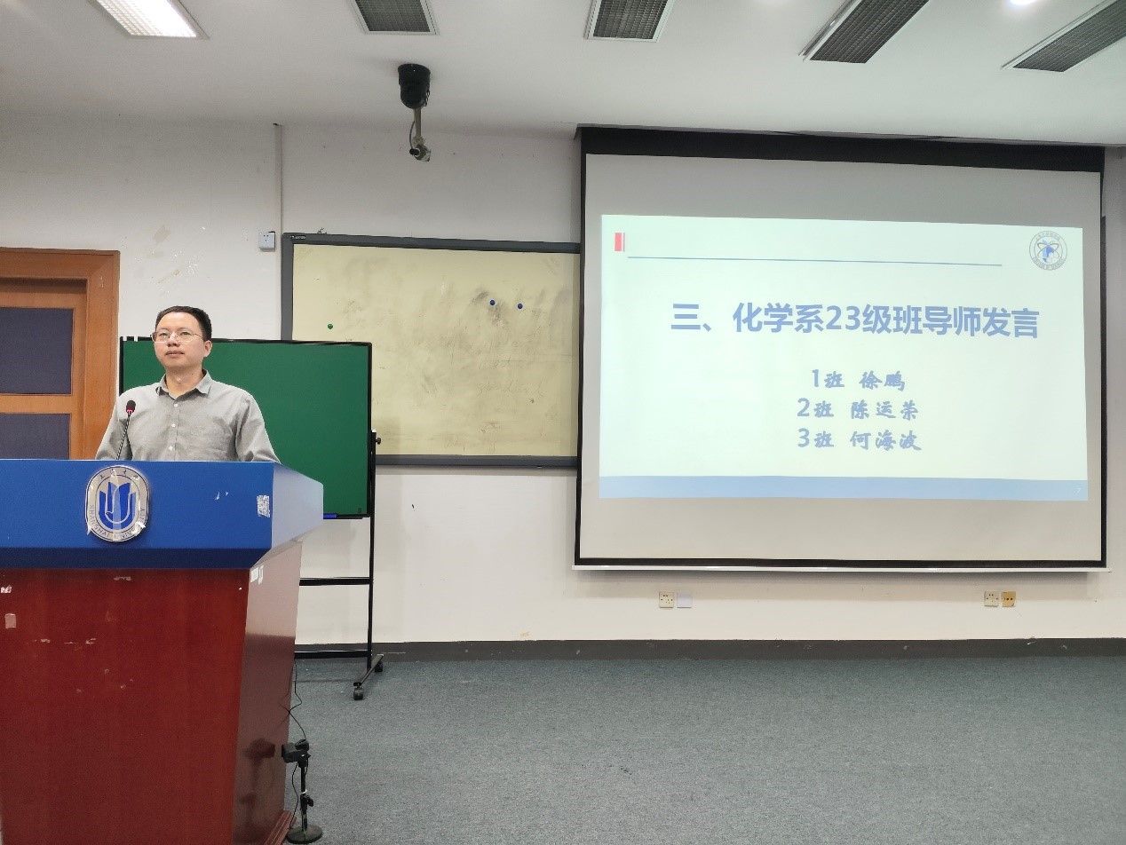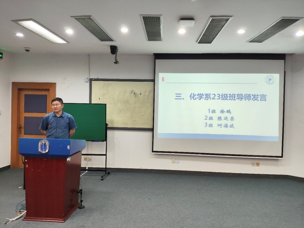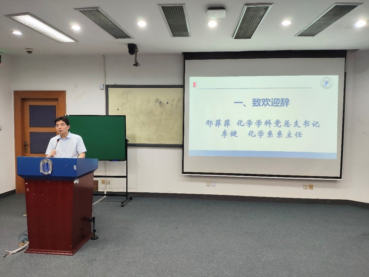 李健主任表示终于在盼望中迎接了各位同学的到来,未来三年时光将与同学们教学相伴,化学系从人才培养队伍、学科平台实力、分流奖学金、优秀校友资源等方面都给同学们提供大力支持保障,化学系从领导班子、导师团队到行政教辅、朋辈力量都是具有强大凝聚力的队伍,希望大家能够在化学系度过愉快的三年时光。