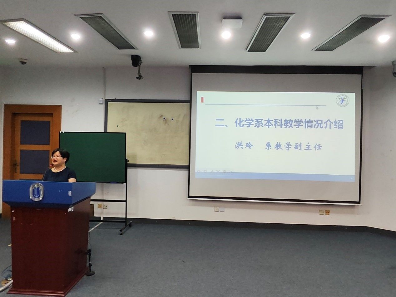 洪玲副主任针对本科教学情况向同学们做了简单介绍,表示会同教学秘书韩靖老师一起为同学们课程学习提供全力支持,无论同学们大一学习情况如何,来到化学系就是一个新的开始,欢迎同学们多与老师交流。