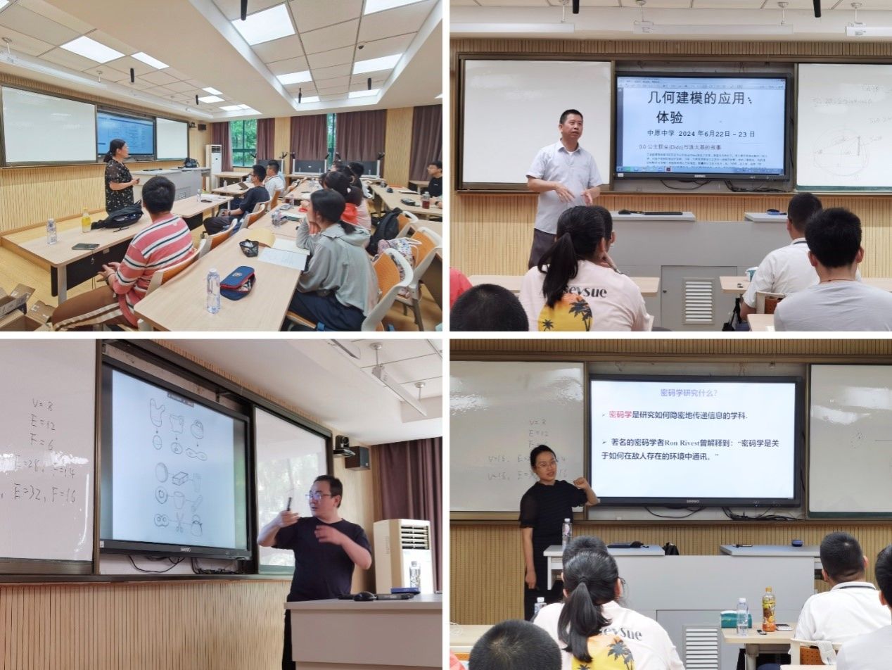 6月22-23日,在中原中学实践点,王晓霞老师的《函数建模的应用体验》、王远弟老师的《几何建模的应用体验》、鞠先孟老师的《拓扑与几何》、丁洋老师的《密码学的应用体验》等精彩课程使得同学们学习了到数学的理论,更感悟到应用数学于实际的重要性。