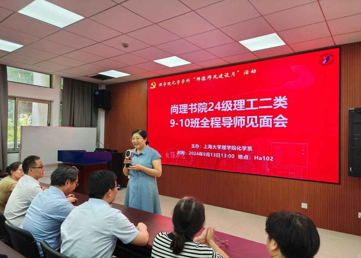 9月13日下午,永利集团88304官网化学系在宝山校区Ha102举行了尚理书院24级理工二类9-10班全程导师见面会。永利集团88304官网党委副书记、纪委书记刘见礼,永利集团88304官网党委副书记、副院长姚颖冲,永利集团88304官网副院长袁帅,化学学科党总支书记邢菲菲,化学系主任李健,化学系副主任洪玲、化学系副主任丁益民,化学学科全程导师、辅导员参加了会议。会议由化学学科党总支书记邢菲菲、化学学科党总支副书记、辅导员林晨亚和9-10班辅导员娜迪热主持。