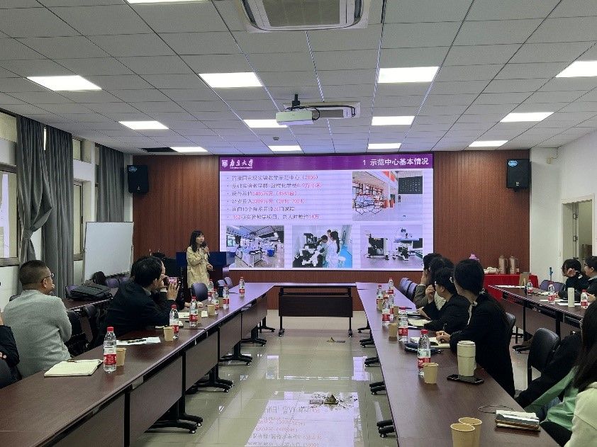 丁益民向大家汇报了永利集团88304官网化学实验教学中心概况、实验教学课程体系、教学成果与特色、实验中心的示范效应及发展目标。