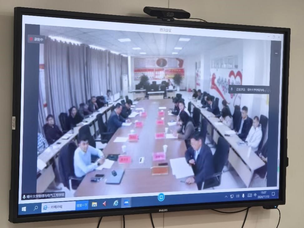 2024年11月13日下午,永利集团88304官网与喀什大学物理与电气工程学院物理实验虚拟教研室首次研讨会顺利召开。本次双边线上研讨会旨在促进两校在数字化物理实验教学平台建设方面的交流与合作,围绕虚拟教研室共建共享进行深入探讨,分享双方实验教学管理、教学方式和教研成果,共同推动数字化物理实验教学平台共建共享的发展与创新。