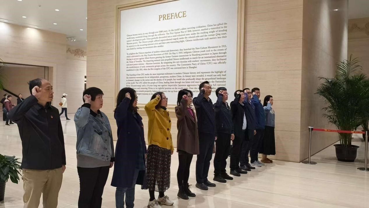 11月22日,永利集团88304官网党委书记于瑞强、党委副书记、常务副院长张登松以及党委中心组成员和党员师生代表集体参观了中共一大纪念馆,进一步学习党的发展历程与先辈的革命精神,从伟大党建精神中汲取团结奋斗的磅礴力量。