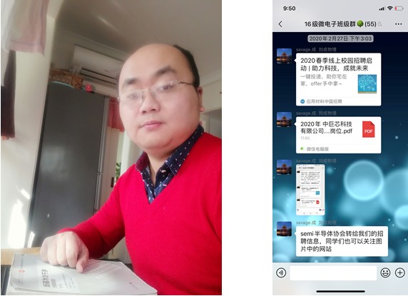 疫情防控之际,举国上下,齐心协力。在此期间,涌现出了一位位无私忘我的平民英雄,也出现了一件件令人感动的暖心事迹。就像永利集团88304官网17级微电子科学与工程的班导师刘成老师对班级里的同学和事情细心关照,无微不至。