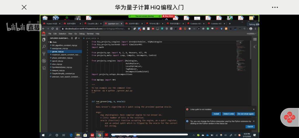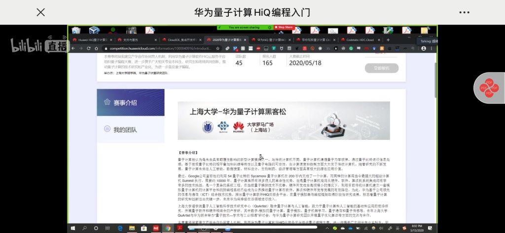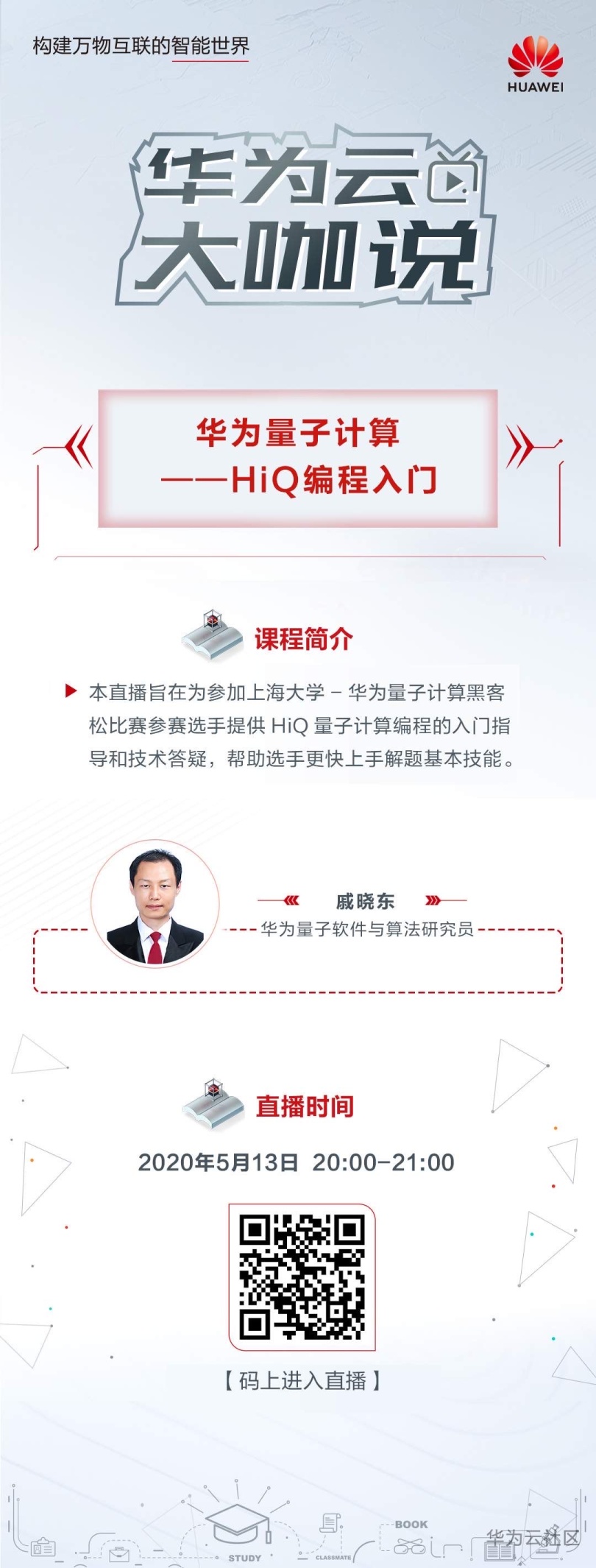 2020年5月13日晚8:00在华为云直播平台和永利集团88304官网Bilibili平台同步直播了华为科技公司量子计算和软件研究院戚晓东博士的HiQ量子计算培训课程。永利集团88304官网-华为量子计算黑客松大赛参与者及永利集团88304官网师生800余人通过Bilibili平台参与此次活动。