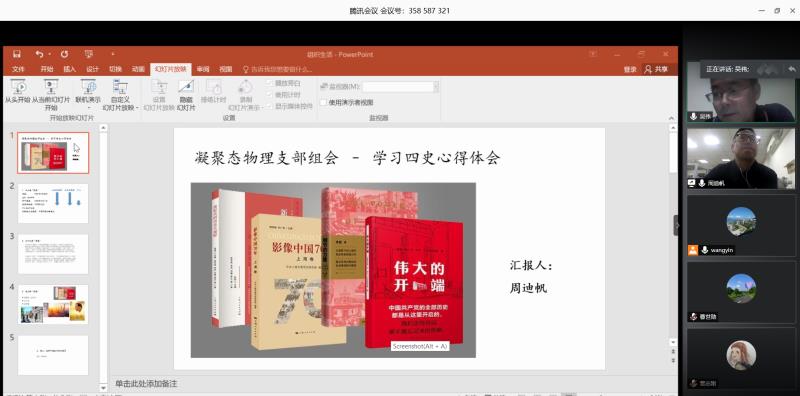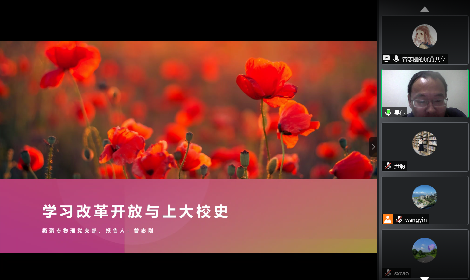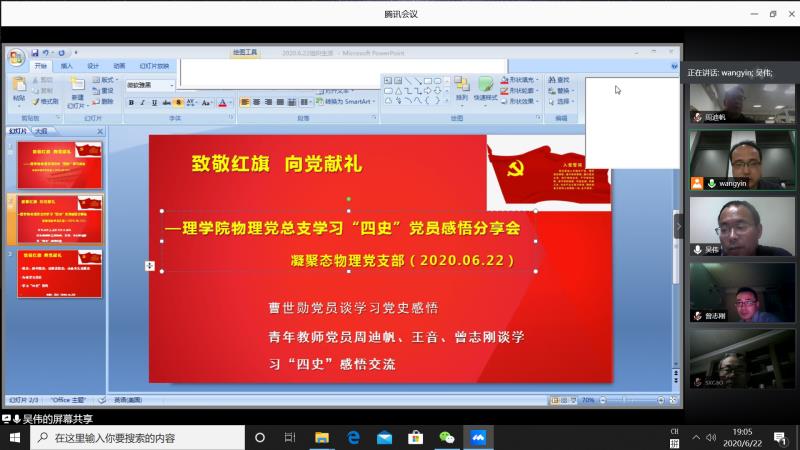 6月22日,永利集团88304官网物理系凝聚态物理党支部在网络平台上zoom会议室开展了“四史”学习教育及党员感悟分享会。