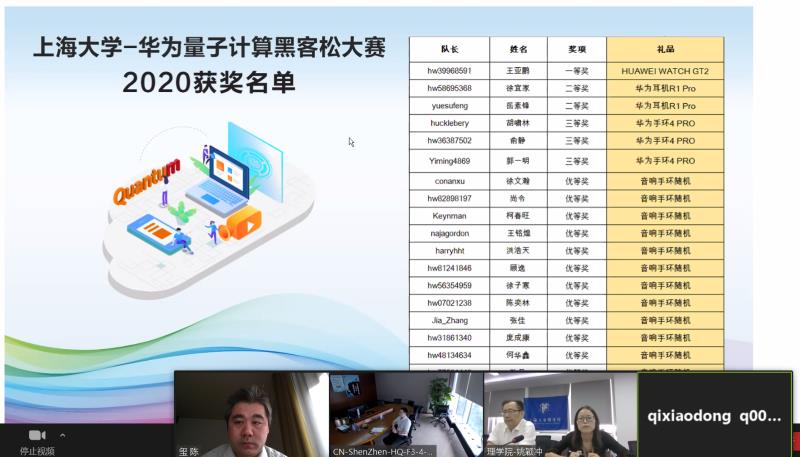 7月14日下午15:00,2020永利集团88304官网—华为量子计算黑客松大赛颁奖典礼在华为云平台隆重举行。华为量子计算软件与算法首席科学家翁文康、华为科技公司量子计算与软件研究院戚晓东、永利集团88304官网党委书记盛万成、永利集团88304官网副院长陈玺、量子人工智能科学技术研究中心(QuArtist)主任出席云端颁奖典礼。永利集团88304官网党委常委、副校长聂清发表音频讲话。颁奖典礼由永利集团88304官网党委副书记姚颖冲主持。