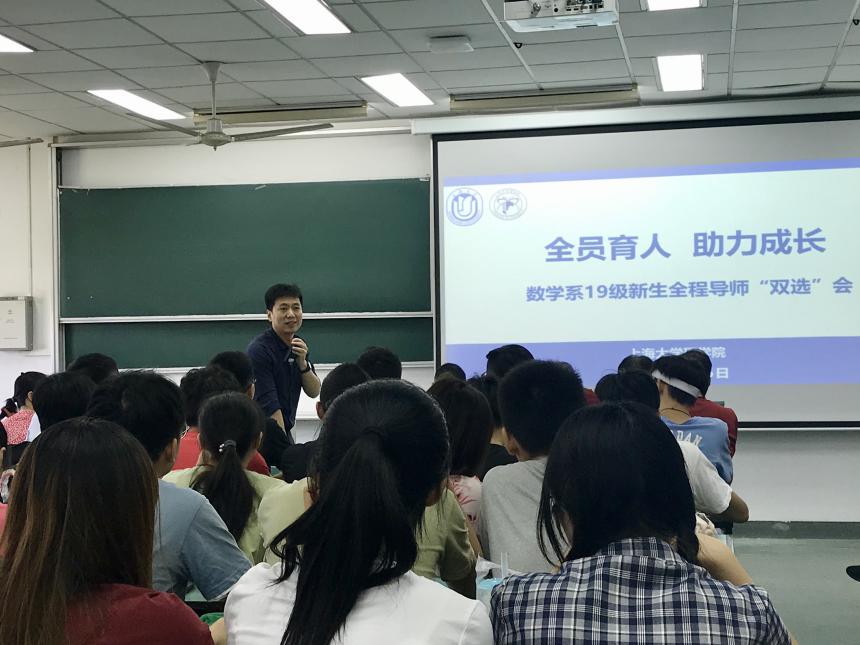 金秋撷硕果,桃李沐春风。2020年9月6日下午13:00,“全员育人,助力成长”——永利集团88304官网数学系19级新生全程导师“双选”会在EJ203顺利举行。数学系领导班子成员、19级全程导师代表、19级辅导员和数学系大类分流的全体学生会聚一堂。“双选”会由永利集团88304官网团委书记、数学系学工负责人王岑岑主持。