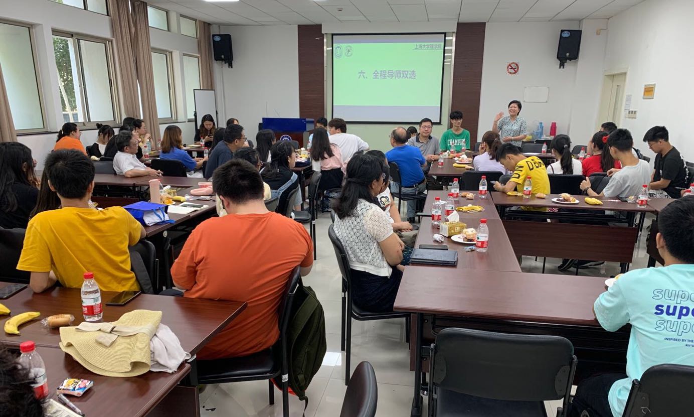 在全程导师制宣讲环节,系教学副主任邢菲菲老师详细说明了全程导师的作用、意义及开展形式,并向同学们逐一介绍了26位优秀全程导师的基本情况。在对各位导师有了基本了解后,同学们就专业、科研等方面存在的问题与老师们进行了充分交流。