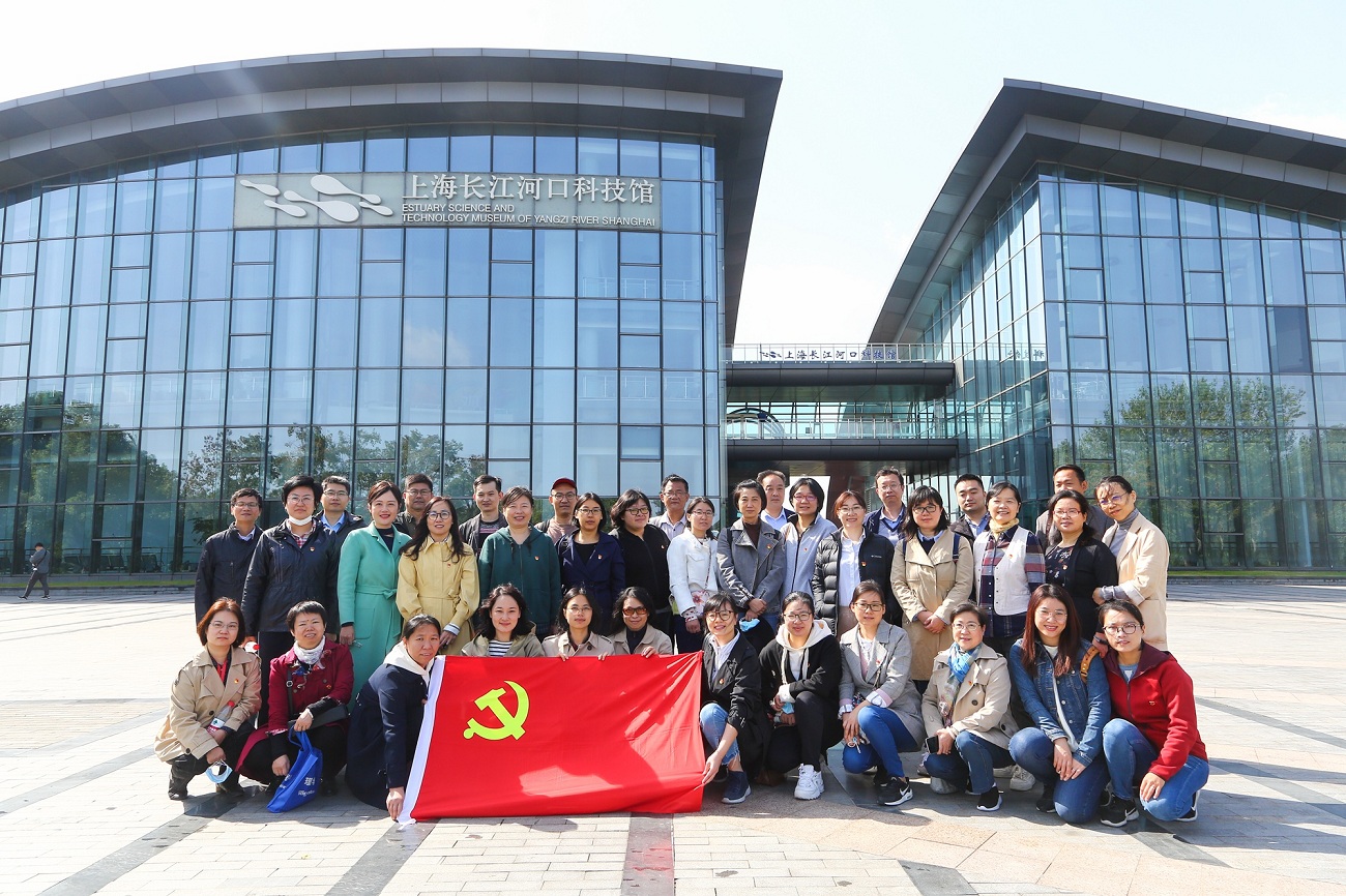 接着大家来到了位于上海宝山吴淞炮台湾湿地森林公园内的上海长江河口科技馆。这是一座以太极鱼为造型的科技馆,也是世界上独一无二的以介绍河口自然环境、科技应用和人文景观知识为为主题的科技馆。大家踩着水波型的楼梯,跟随着讲解员依次从序厅、资源与环境厅、科研与应用厅到人文历史厅,一路了解了河口的历史文化、生态特点及科技应用。大家一边惊叹于大自然的杰作,一边赞叹人文科技力量的伟大。