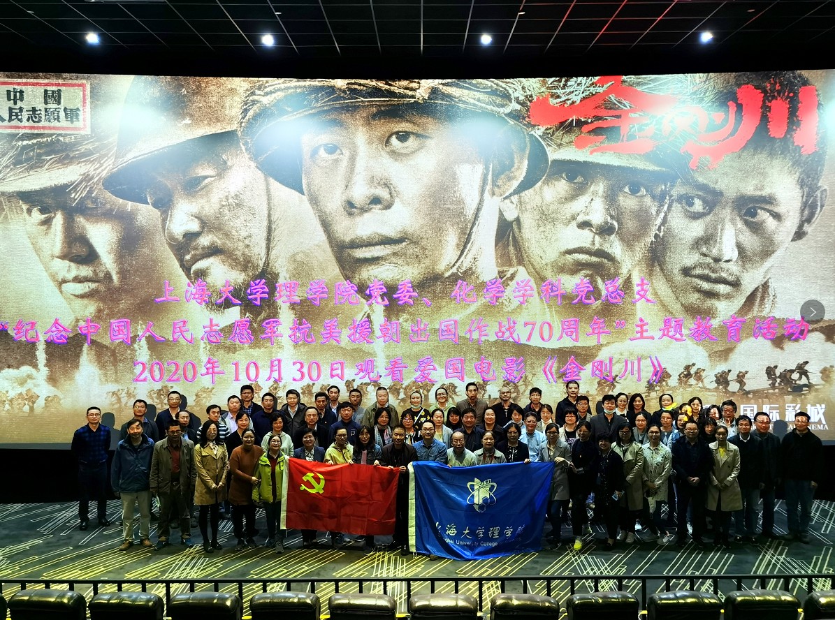 为进一步弘扬伟大抗美援朝精神,延续红色基因,牢记初心使命,10月30日,永利集团88304官网党委、化学学科党总支组织88名党员、积极分子、党外人士、骨干教师、青年老师等观看了抗美援朝战争影片《金刚川》。永利集团88304官网党委副书记陈然,化学学科党总支书记陈雅丽,化学系主任曹卫国及系党政领导班子,院行政支部和化学学科党支部书记等参加了活动。