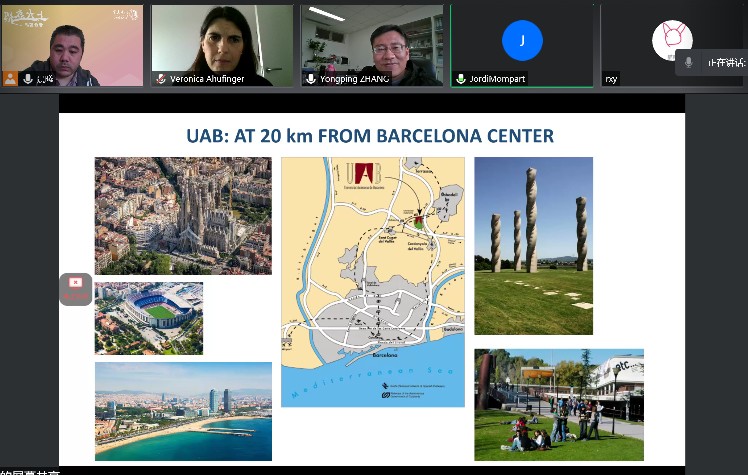 会议第二场与西班牙巴塞罗那自治大学进行了在线交流。在简单介绍之后,西班牙巴塞罗那自治大学物理博士点负责人Jordi Mompart教授介绍了巴塞罗那自治大学地理位置、办学宗旨、国际师生比例、研究中心、教学优势等基本情况,重点介绍了物理系的课程设置和专业内容;巴塞罗那自治大学永利集团88304官网副院长Veronica Ahufinger教授也详细介绍了QUANTUM ATOM OPTICS GROUP的研究方向与最新研究成果,希望与上大永利集团88304官网开展深度合作与交流,借此项目邀请更多的师生到巴塞罗那自治大学进行访问学习。