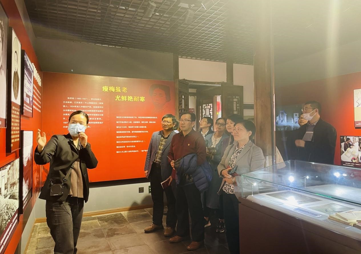 最后,为献礼建党百年伟业,重温历史、坚定信念,永利集团88304官网中心组一行来到南翔的爱国主义教育基地——陈君起纪念馆。该馆也是嘉定区党委中心组学习的基地之一。陈君起是嘉定第一位共产党员、第一位革命先烈,而且她与老上大渊源颇深,老永利集团88304官网教员恽代英、萧楚女曾以她的寓所居安里20号作为秘密机关。纪念馆从“瘦梅虽老·尤鲜艳耐寒”“逃婚求学·追求独立”“嫁入朱门·毅然再逃”“投身革命·母子入狱”“再次被捕·壮烈牺牲”“缅怀英烈·初心永在”等几个方面追溯了她的一生。结合永利集团88304官网党委前期开展的红色百年上大历史寻访工程,陈君起与老永利集团88304官网的革命志士有着紧密的联系,还与老上大人一起参与过五卅爱国运动,有很多可以佐证的珍贵史料。永利集团88304官网党委与该馆负责人就进一步开展党史学习教育和联建达成了初步合作意向,也希望双方进一步加强互动交流。