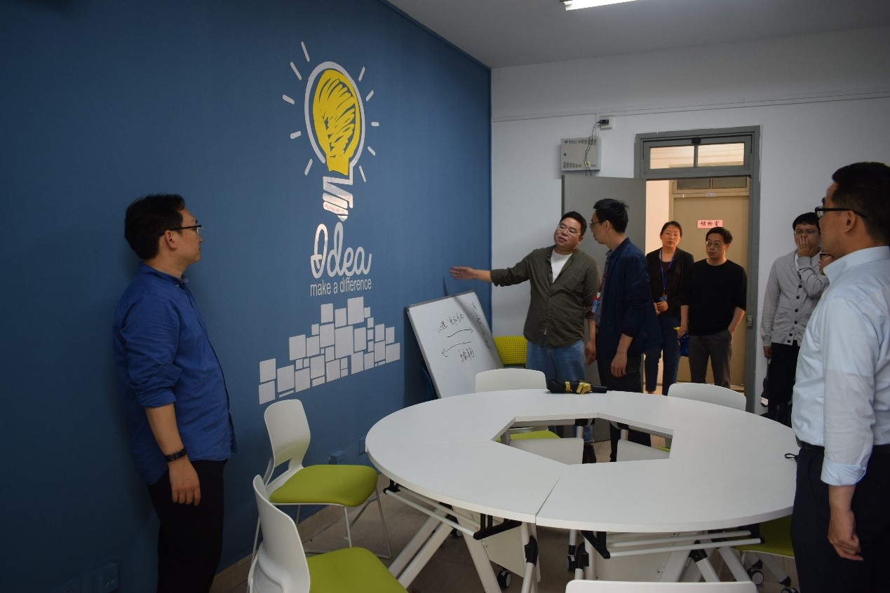 随后,吕宝川还带领全程导师们一起走访调研了目前南区宿舍楼已经开设的“全程导师进楼宇”的工作空间。一行人走访了南区5号楼、7号楼、11号楼和14号楼等楼宇和寝室。在这些寝室楼内,已经不同规模地修缮了供学生自习、讨论的空间,同时给“导师进楼”准备了小型会议讨论场所,为进一步扩大全程导师的活动规模提供了条件。