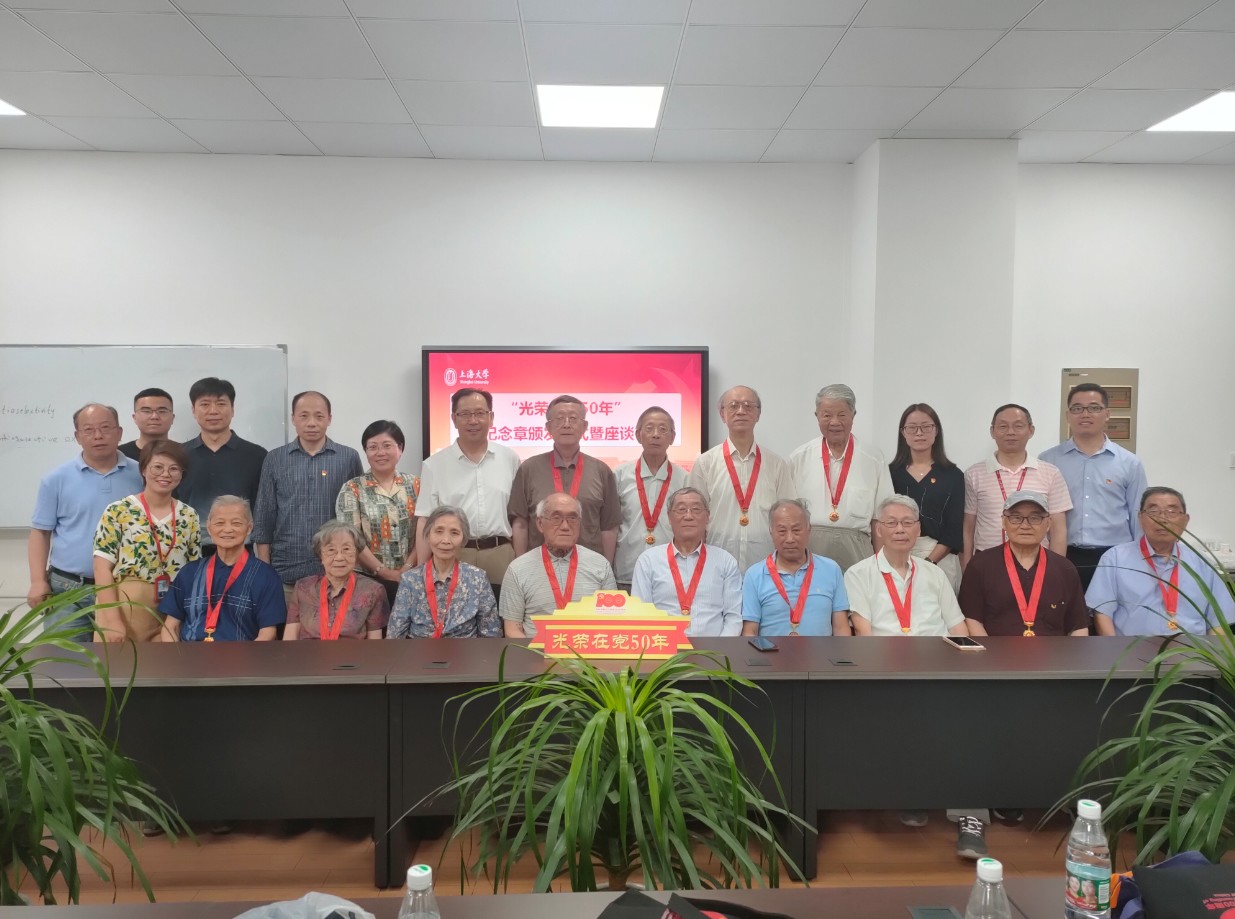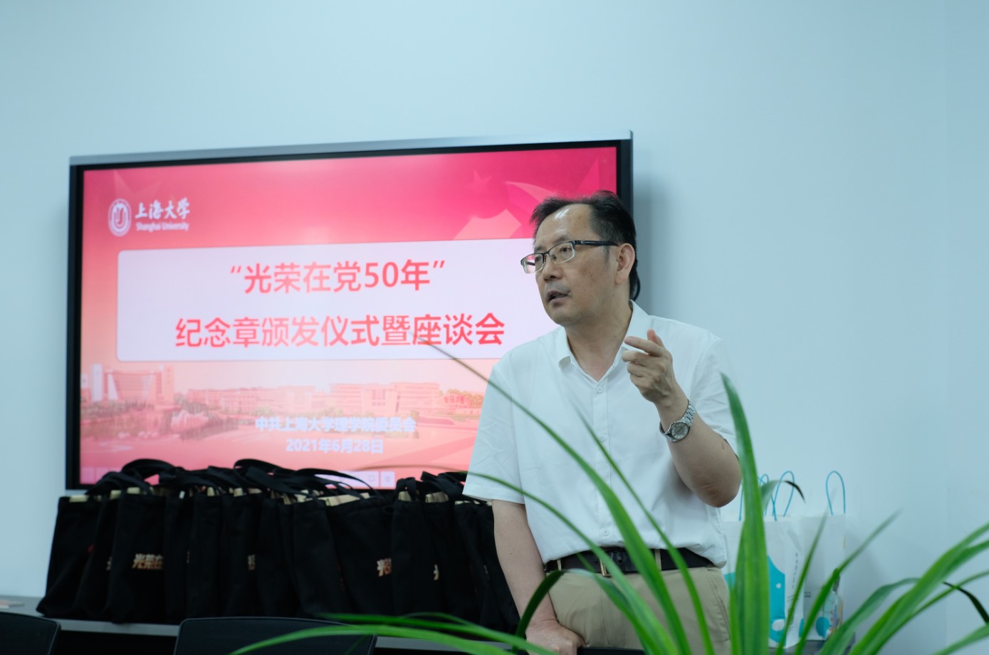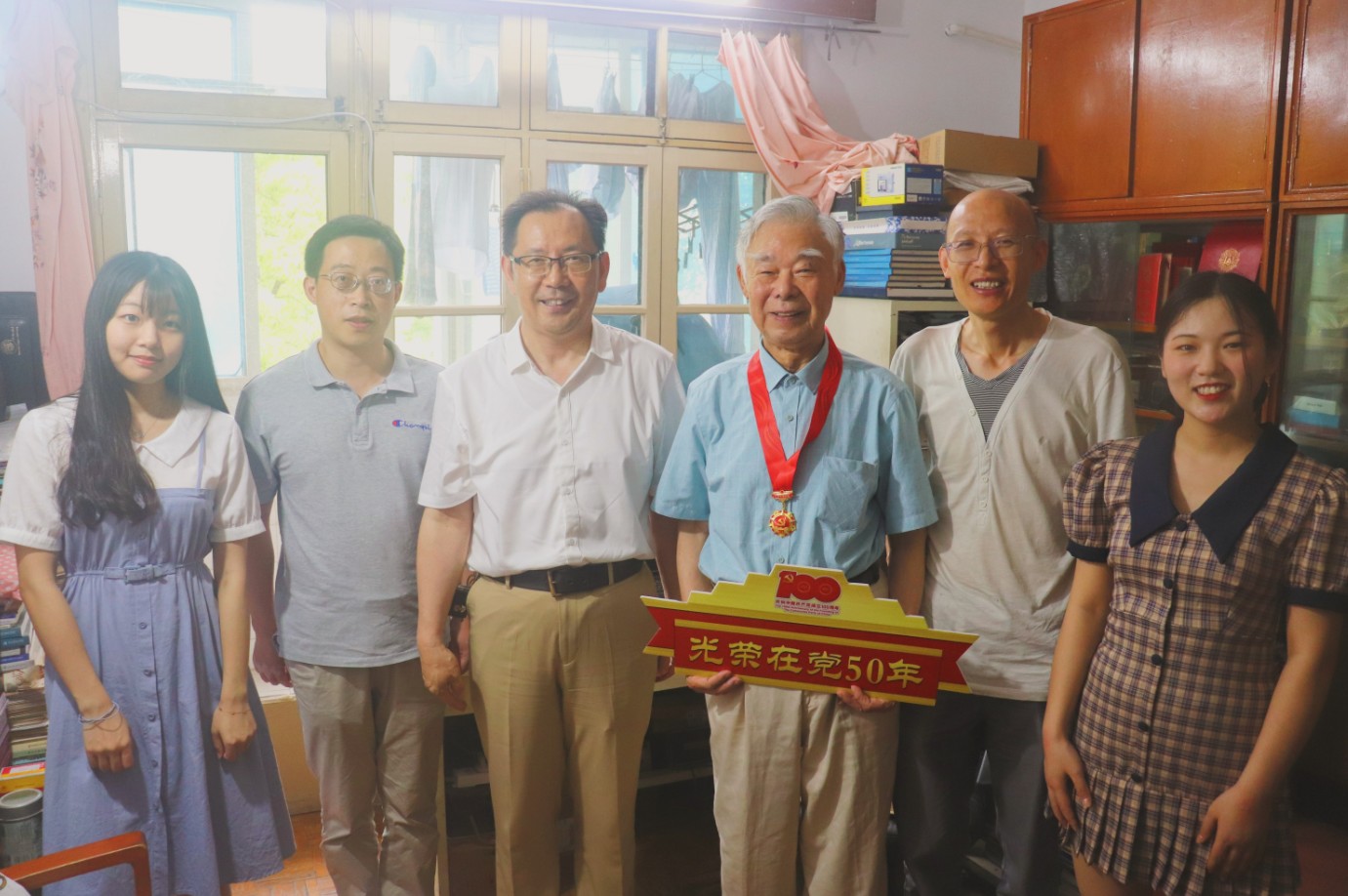 此外,在七一期间,盛万成书记以及三个学科总支书记带领系班子成员、教师党员代表、学生党员代表为行动不便的老同志共计12人上门颁发了纪念章。所有老同志将接受我们永利集团88304官网研究生学子的采访,我们将在“上大理学党建”公众号陆续连载老党员教师的初心说,见证他们的光荣50年。相信他们的精神将激励新一代的理院人,不忘初心,肩负使命,继续为党和国家的事业奋斗拼搏!