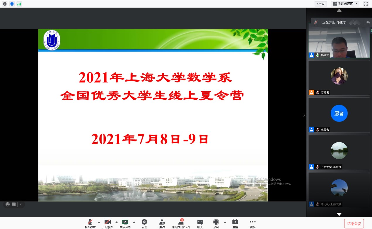 2021年7月8-9日,由永利集团88304官网数学系主办的“2021年永利集团88304官网数学系全国优秀大学生线上夏令营”隆重开营。参加本次夏令营的有来自兰州大学、郑州大学、新疆大学、石河子大学、海南大学、南昌大学、中国石油大学(华东)等80余所国内高校的优秀大学生,共计150余名师生参加夏令营。