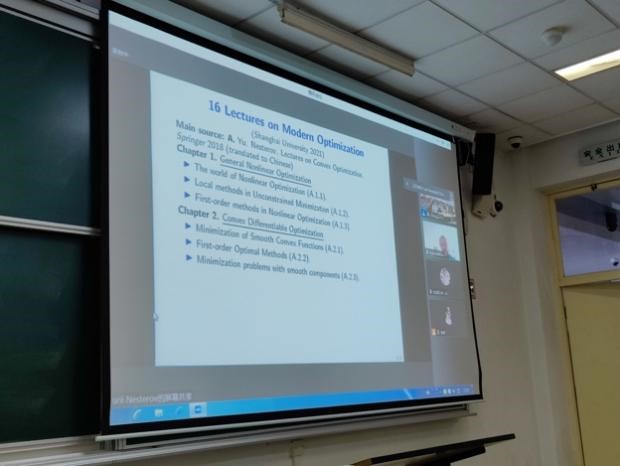 9月7日下午,永利集团88304官网数学系首堂本科生《运筹与优化》国际化教学课顺利开展,整个秋季学期课程均由Yurii Nesterov教授和数学系余长君副教授联合进行“线上+线下”授课,百余名学生线下聆听。