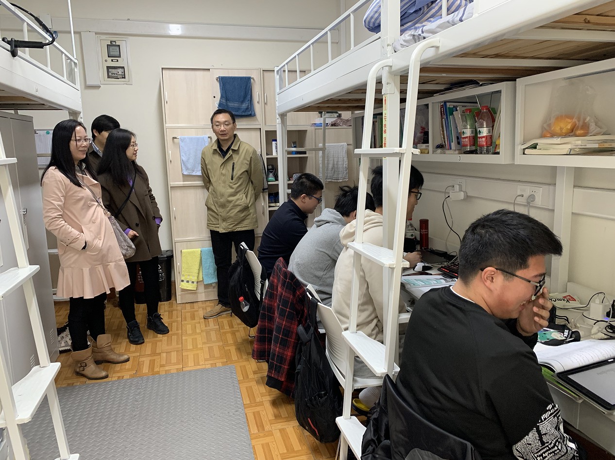 全程导师们在走访宿舍时,与自己对接的学生进行了深入的交流。学生表示在紧张的备考期间看到自己的老师走进宿舍即亲切又紧张,全程导师不但在科研上、学习上指导自己,现在还从生活方面对自己关心,感觉和导师的距离又拉近了一步。