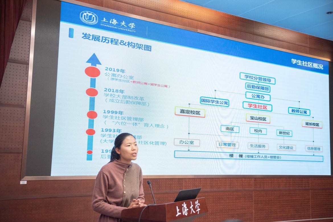 后勤保障部公寓办文化建设主管褚凤灵则从和谐园区出发,介绍了全程导师工作中园区文化育人工作情况,她表示公寓办将继续主动对接学生需求,实现园区与学生的共建、共享、共治。