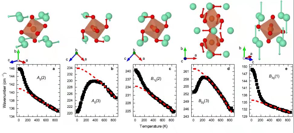 研究发现,在SmFeO3单晶中,由Fe和Sm两个磁性子晶格之间的自旋相互作用产生自旋-声子强耦合。我们认为这种耦合可以看作声子频率的巨大偏移以及新声子的产生(图2)。单独Fe的磁有序不存在自旋-声子耦合,而Sm自旋有序的参与导致自旋-声子强耦合的出现。有趣的是,这种Sm磁性子晶格的自旋有序不是自发的,而是由Fe磁性子晶格的自旋有序诱导的。我们的研究结果表明,在多阶非线性磁有序相互作用中出现了一个无需自发发生的衍生现象。