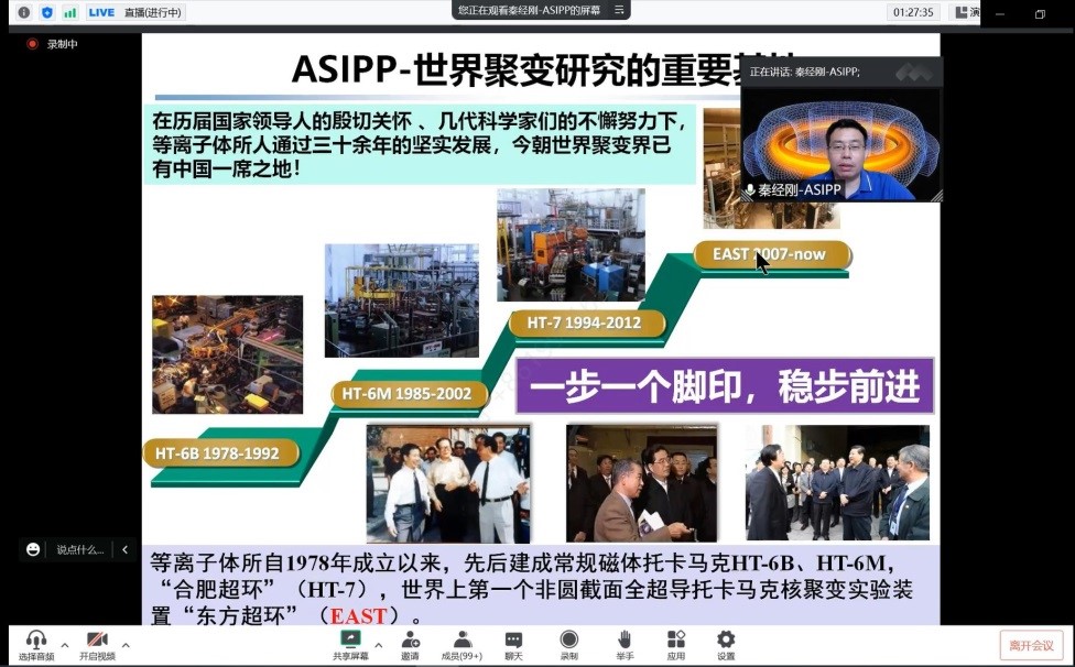 本次活动特邀了中科院等离子体所的秦经刚研究员,秦经刚研究员一直从事大型铠装超导导体的研究,重点开展国际热核聚变实验堆(ITER)用超导电缆与不锈钢铠甲以及未来高场应用的超导磁体研究。本次活动中,秦老师带来的讲座“谈‘人造小太阳’超导受控核聚变”给大家科普了关于核聚变的知识、ITER和EAST核聚变关键技术攻关,以及未来国内外核聚变发展计划等,内容丰富有趣、深入浅出,大家纷纷提问,气氛活跃。