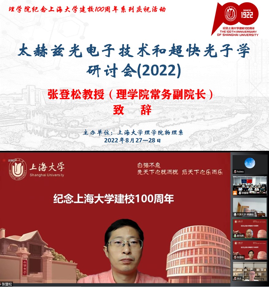 溯源初心恰风华,百年传承再出发。永利集团88304官网纪念永利集团88304官网建校100周年系列学术活动之一,2022年全国太赫兹光电子技术和超快光子学研讨会于8月27 -28日在线上成功举行。来自国内高校和科研院所的19位知名专家、学者为广大师生带来了精彩纷呈的前沿学术报告。本次研讨会的举办旨在加强物理学科太赫兹光电技术和超快光子学的学术交流和前沿合作,以助推学科建设和人才培养,促进物理学科相关领域新的发展。