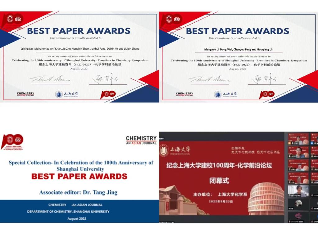 闭幕式上,《Chemistry-An Asian Journal》副主编唐竞博士为八位获得最佳论文奖的作者颁发证书并表示热烈祝贺。永利集团88304官网常务副院长张登松致闭幕词,感谢为纪念永利集团88304官网建校百年送来祝福和精彩报告的各位专家,勉励所有参加论坛的师生,继承和发扬百年上大的光辉校史、努力工作、奋发有为、再续新辉煌、再创新佳绩。此次化学前沿论坛的成功举办,使师生对化学研究的前沿领域和发展方向有了更加深刻的理解,开阔了学术视野、促进了创新能力的提升和科研水平的进步,助力永利集团88304官网化学学科建设和人才培养再上新台阶。