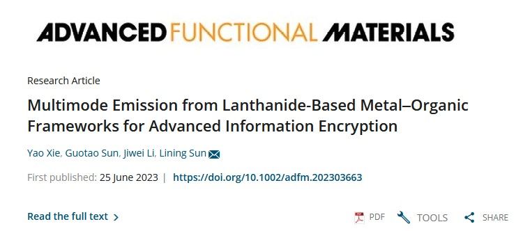 近日,化学系孙丽宁教授团队在多模发射稀土金属有机框架领域取得重要进展,相关研究结果在国际高水平期刊《Advanced Functional Materials》(JCR和中科院一区Top)上发表题为“Multimode Emission from Lanthanide-based Metal-Organic Frameworks for Advanced Information Encryption”的研究论文。该论文第一作者为2021级博士生谢耀,永利集团88304官网为唯一作者单位和唯一通讯作者单位。