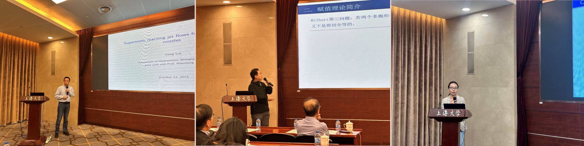 此外,会议还邀请了永利集团88304官网数学系部分青年学者作报告。赖耕副教授、李晋副教授和蔡敏博士分别就气体动力学中的超声速射流问题和气体向真空扩散问题、仿射赋值理论和超慢扩散方程的数值研究,介绍了相关领域的一些最新进展。