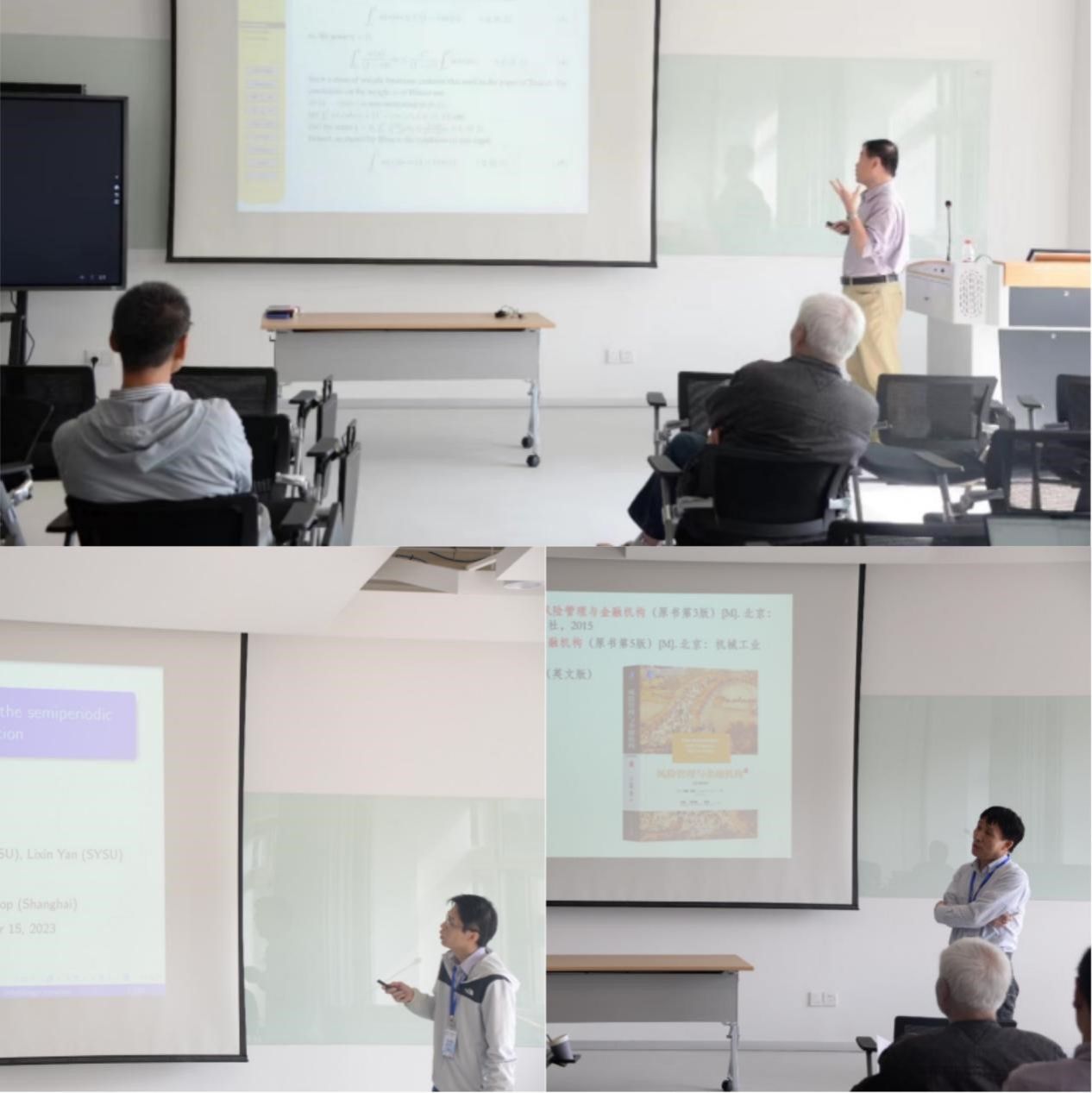 15日上午,上海师范大学李中凯教授作了题为“Operators on the Bergman spaces associated with a class of generalized analytic functions”的报告;中山大学陈祥宏副教授作了题为“Some spacetime estimates for the semiperiodic Schrodinger equation”的报告;嘉兴学院蓝森华教授作了题为“期权定价中的Fourier方法”的报告。