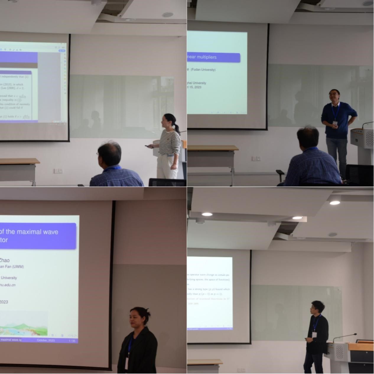 15日下午,浙江大学王梦教授作了题为“The rate of convergence on Schrodinger operator”的报告;复旦大学贺丹青副教授作了题为“On multilinear multipliers”的学术报告;浙江师范大学赵俊燕老师作了题为“Hardy space estimate of the maximal wave operator”的报告;永利集团88304官网项承昊博士作了题为“Sharp constants for fractional Hardy-Littlewood maximal operators on finite graphs”的报告。